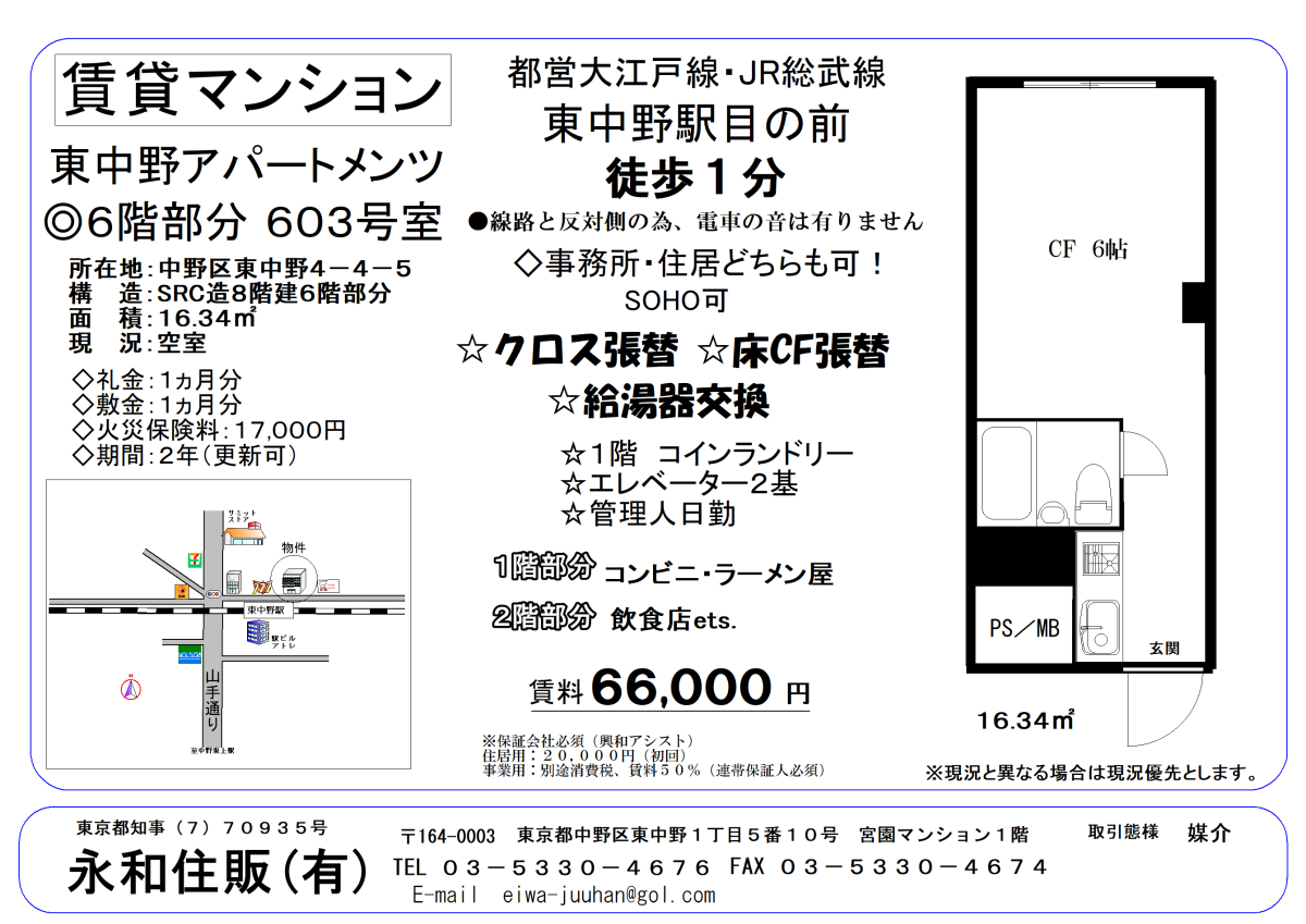 | 沿線・駅 | JR中央総武線、都営大江戸線・東中野駅徒歩1分 | ||